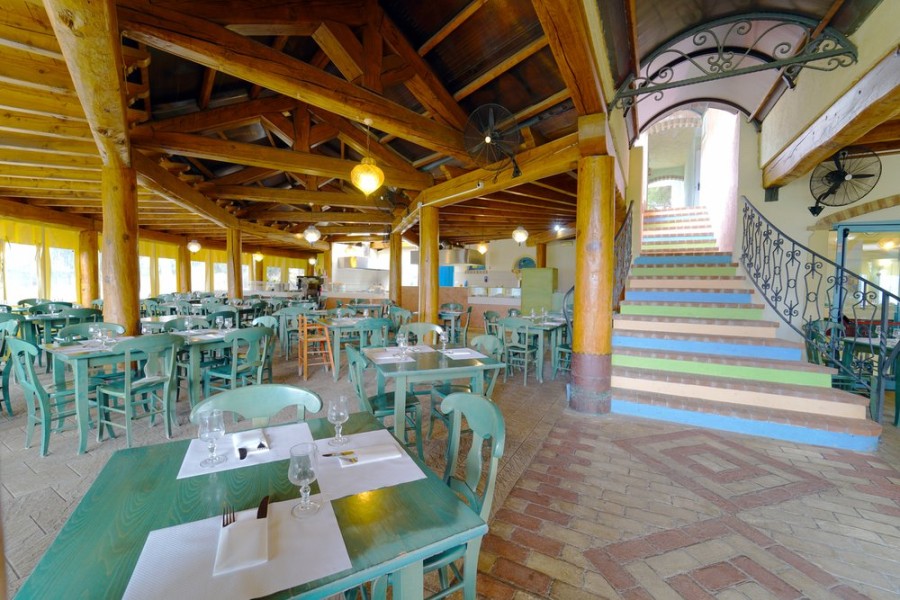 Presso il ristorante con piccola sala interna climatizzata e verande coperte, pasti a buffet con piatti della cucina locale e nazionale e show cooking. Area bimbi (dai 6 anni) riservata a pranzo e cena ad orari stabiliti, con assistenza di personale dedicato. Previa segnalazione, disponibili piatti per ospiti con intolleranze alimentari (alimenti base confezionati forniti durante l’orario di apertura del ristorante); la struttura non dispone di un’area separata adibita a cucina per celiaci.