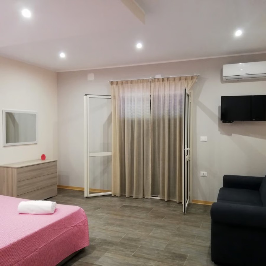 ✔ Camera da Letto, ✔Soggiorno con 2 Divani, ✔ Angolo Cottura e servizi, ✔Aria Condizionata ✔Telefono ✔Tv ✔Patio coperto e Giardinetto ✔Posto Auto