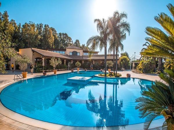 Due ristoranti, diversi per location, atmosfera e servizio. Il Ristorante Centrale, sulla piscina Relax, è dedicato agli ospiti in formula hotel. Prima colazione continentale dalle 7:30 alle 10:00 prevista al Giardino del Gusto, un’area ombreggiata e all’aperto, con buffet assistito. Angolo del dormiglione dalle ore 10:00 alle ore 11:00 offre la possibilità di consumare una colazione soft accanto al bar della piscina Relax con caffè americano e cornetteria; Pranzo e cena, si svolgono nelle tre sale del Ristorante Centrale con servizio di buffet assistito e prevedono 3 primi, 3 secondi, contorni e antipasti, frutta, dolce e bevande da dispenser incluse ai pasti (acqua, vino, cola, aranciata e gassosa).